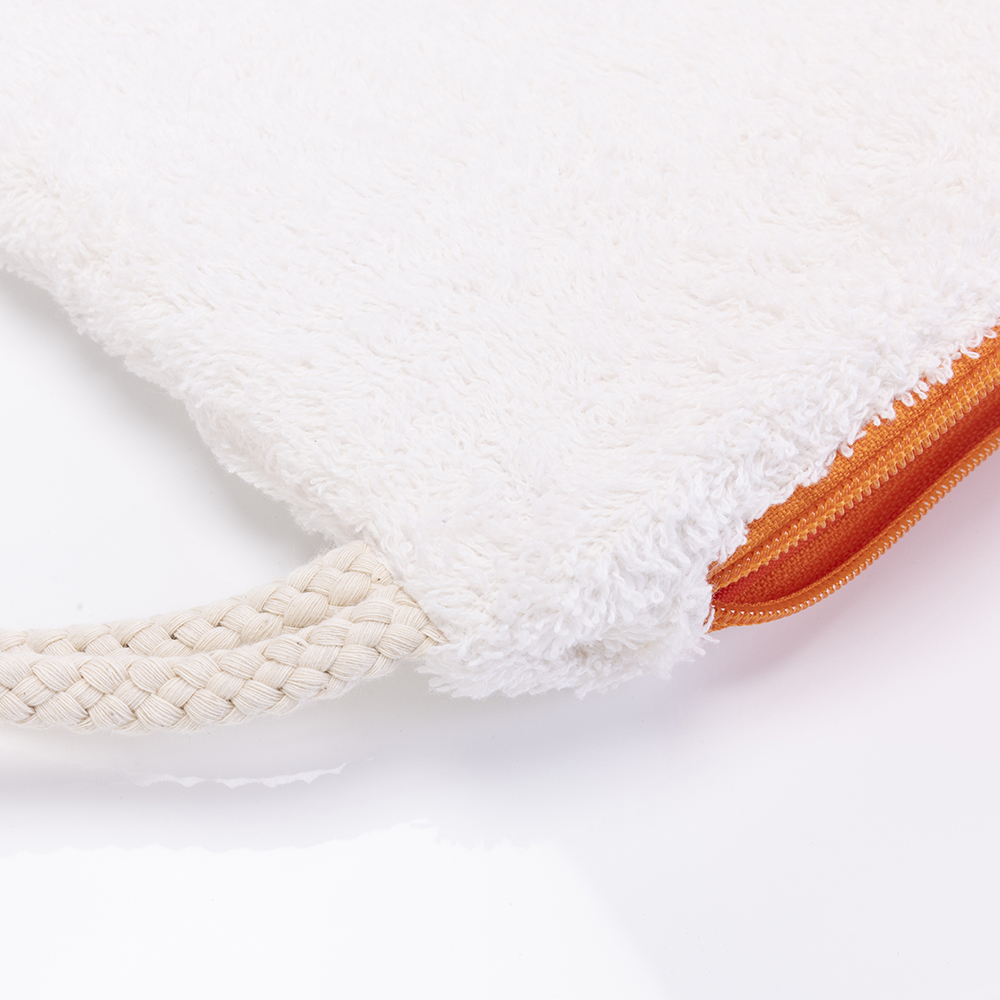 Große Strandtasche aus weicher Frottee-Qualität in der Farbe Ecru. Hier ist genügend Platz für alle Dinge, die man an einem Strandtag so benötigt. Diese Tasche ist auch der perfekte Begleiter zum Yoga oder Sport. Außen mit aufgenähtem Fach für Dinge, die schnell zur Hand sein sollen.
