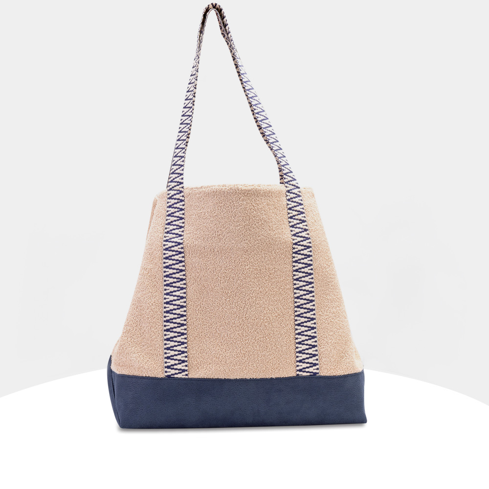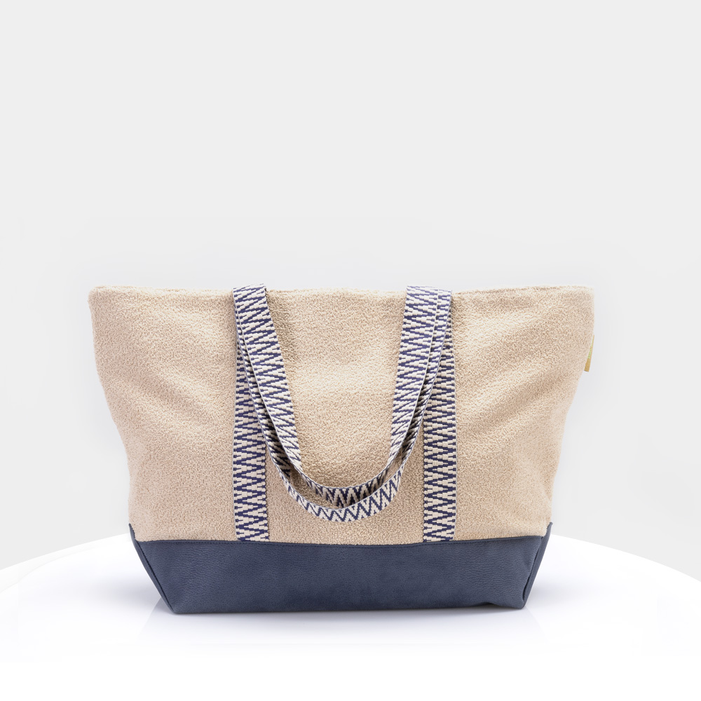 Der dazu passende jeansfarbene Boden ist aus wasserabweisendem Material und kann auch ohne Bedenken neben der Poolliege stehen. Das knallorangene Futter ist ebenfalls wasserabweisend. So ist auch der Tascheninhalt lange gegen Feuchtigkeit geschützt.
